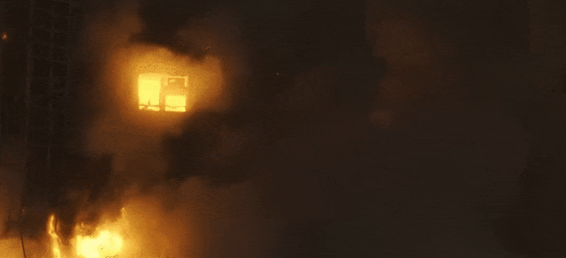 三是,楼内有太多户发生了燃烧,面对这么大数量的着火单位,消防员进入内攻的话,必须要有水带、空呼等配套设备,并且要保证水的供给,而这些在短时间内是难以做到的,因此在外立面燃烧物烧完之后,进入了多户户内燃烧阶段,消防员只能先进入低楼层逐户灭火、救人,对高楼层的火无能为力。