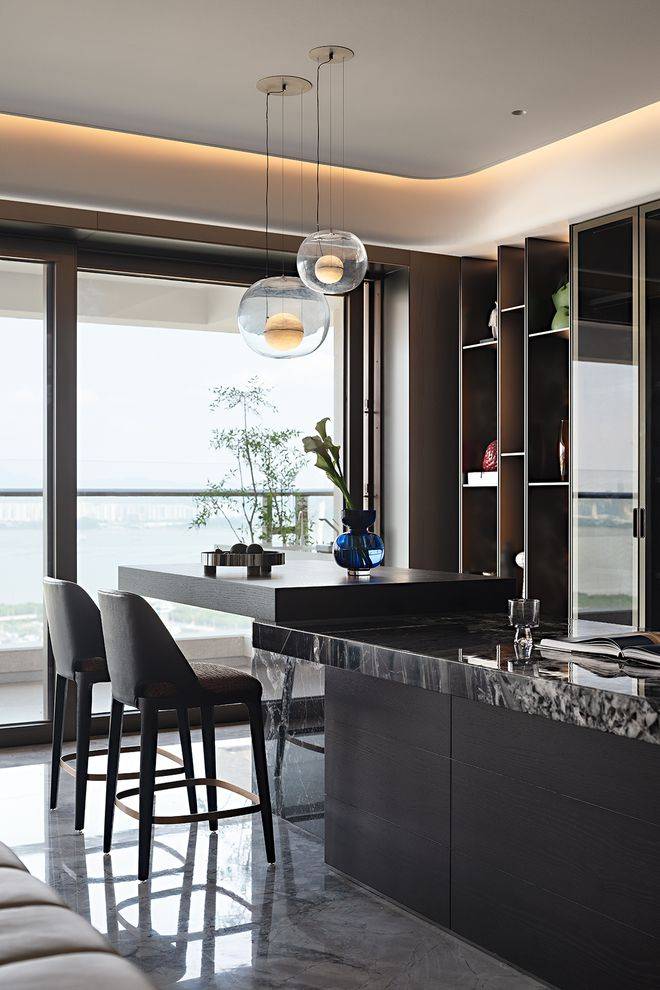 真正的奢侈,在于那些需要细看才能发现的用心。墙面木饰面采用上下异纹设计,嵌入纤细金属线条,于微妙起伏中塑造立体层次。