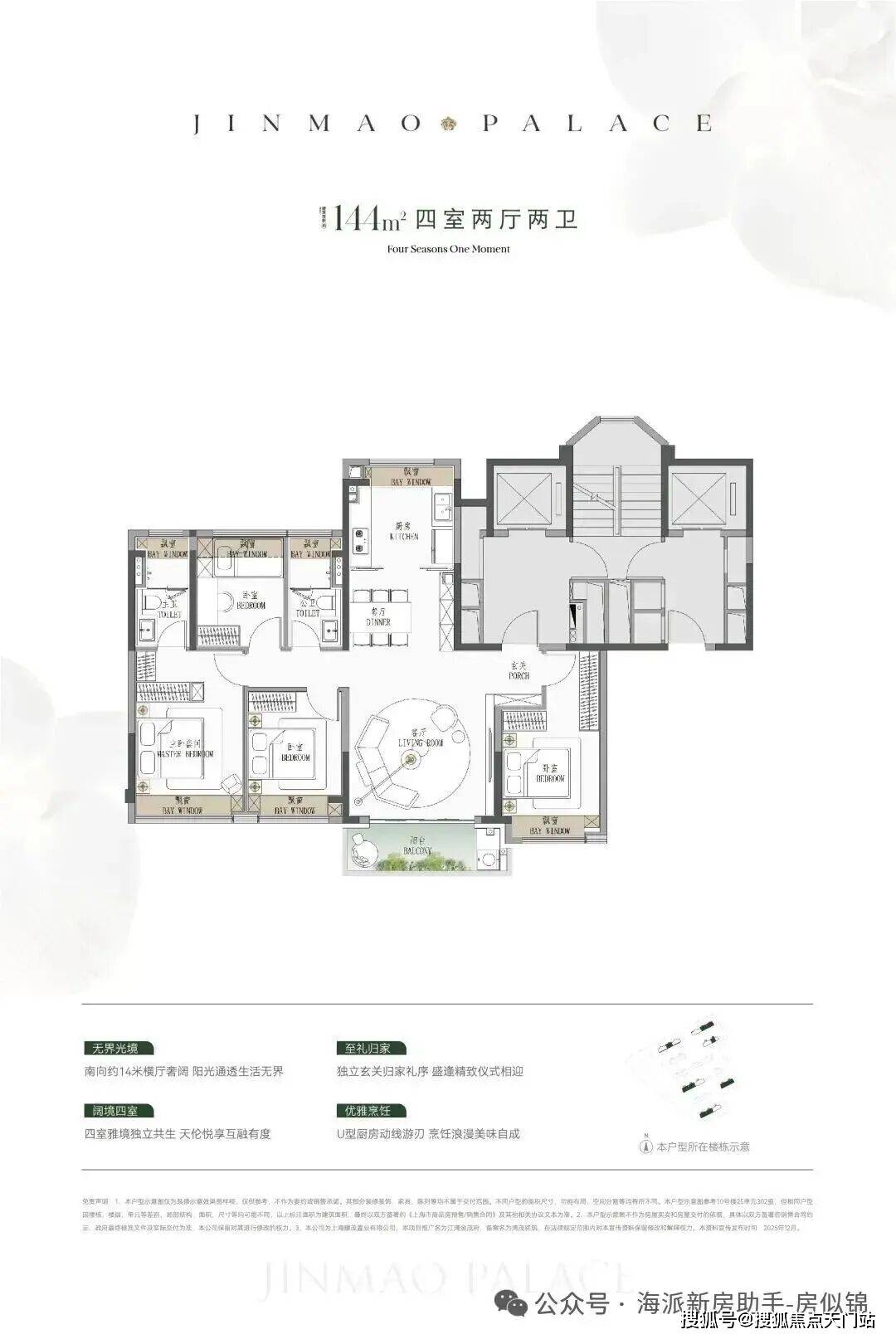 ● 建面约190㎡4房:楼王位置的顶奢大平层,同价位段在杨浦只能买到约120㎡3房!